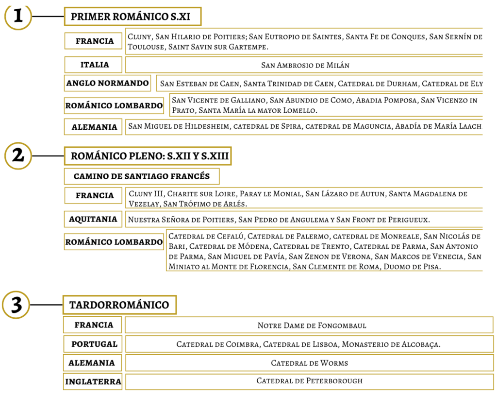 A lo largo de las tres etapas del arte románico y a través de los distintos países europeos que dieron forma a esta primera fase del arte medieval, exploraremos sus edificaciones más emblemáticas, así como sus esculturas y pinturas más destacadas. Este recorrido nos permitirá adquirir un conocimiento profundo y amplio del románico en Europa.