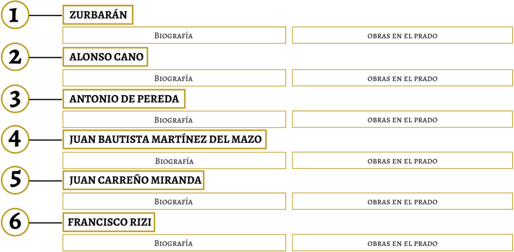 Después de profundizar en la obra de Velázquez y sus contemporáneos, continuaremos nuestra visita virtual por el Barroco español siguiendo un orden cronológico, explorando a otros grandes maestros del siglo XVII, el Siglo de Oro español. Nos enfocaremos en las obras de artistas de la talla de Francisco de Zurbarán, Alonso Cano, Antonio de Pereda, Juan Bautista Martínez del Mazo, Juan Carreño de Miranda y Francisco Rizi. Estudiaremos tanto las piezas expuestas en el Museo del Prado como aquellas que se encuentran en sus almacenes o en depósito, brindando una visión completa y detallada de la riqueza artística de este periodo.